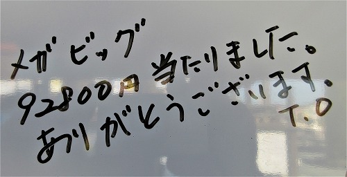 先週のМEGA BIGで【250万円】当たりました!ありがとうございました。(R.N様)