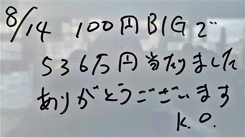 100円BIGで【536万円】当たりました。ありがとうございます。(K.O様)