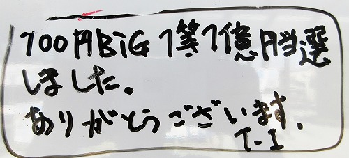 【BIG1等】当選しました。ありがとうございました。(T様)