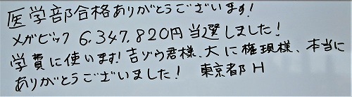 - 1.3. メガビック【634万円】当選しました!(東京都 H様)