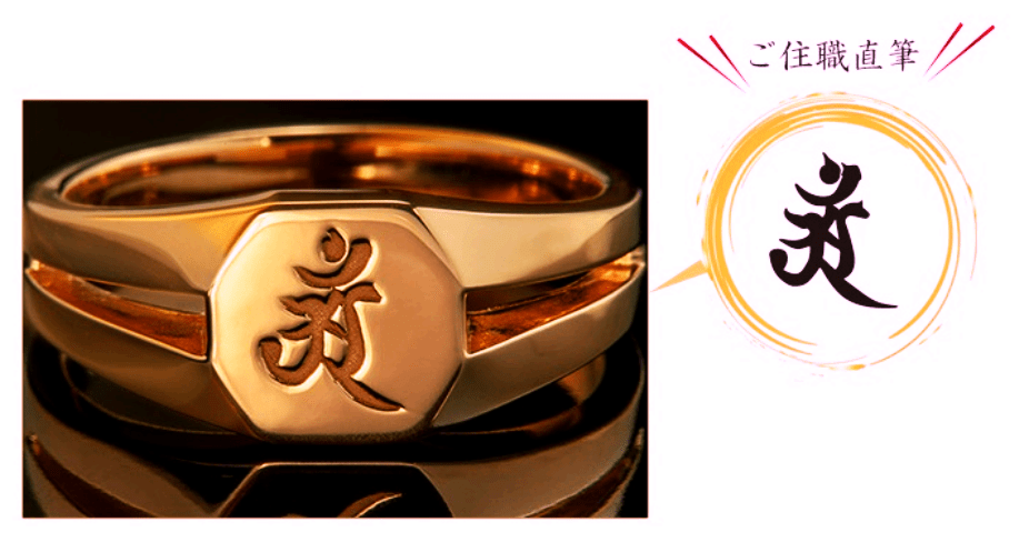 金運upリングには、住職の直筆で吉ゾウくんの梵字(アン)を刻み込みました。