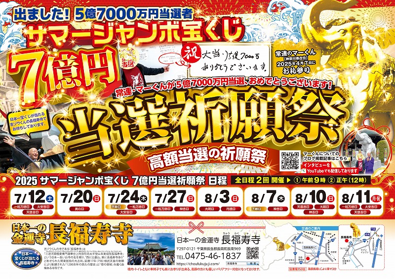 最強の太陽パワーで「サマージャンボ宝くじ7億円当選」を狙って下さい。