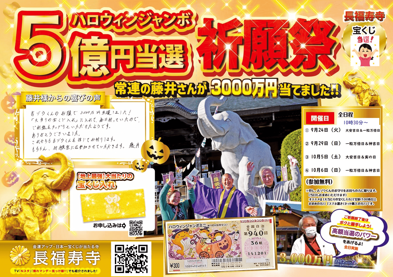 - 1. 【明後日に開催!】\5億円当選を狙う!/ハロウィンジャンボ【高額当選】祈願祭