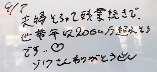 9月に「喜びのおすそ分けボード」へ書いて下さった