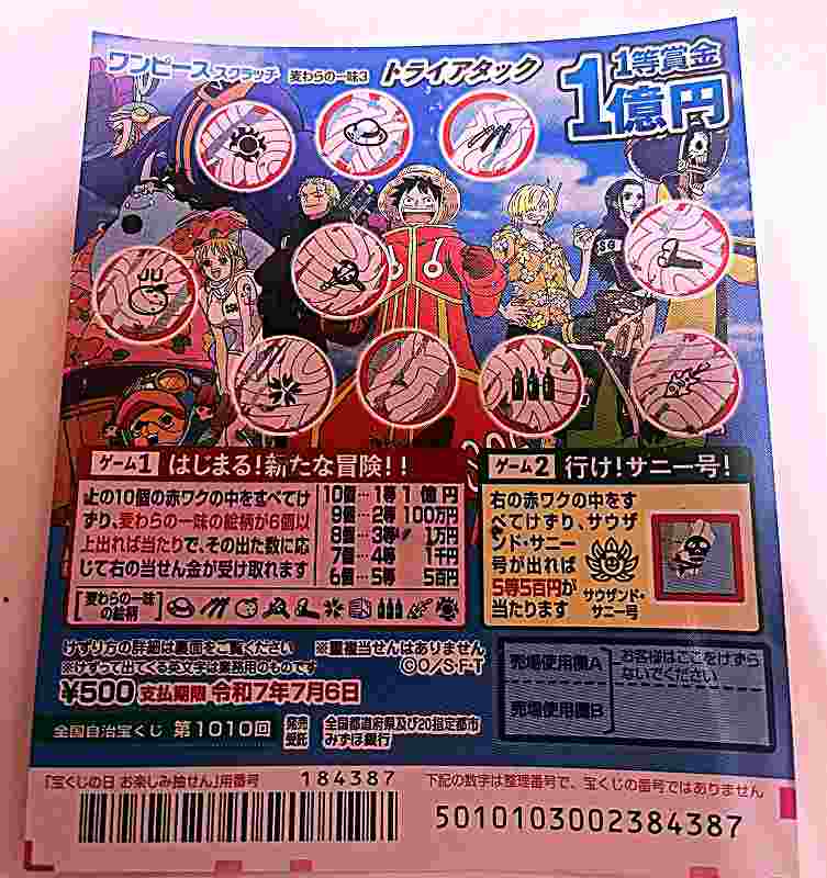 \ワンピース・スクラッチ300万円、240万円、127万円、100万円当選の実績/