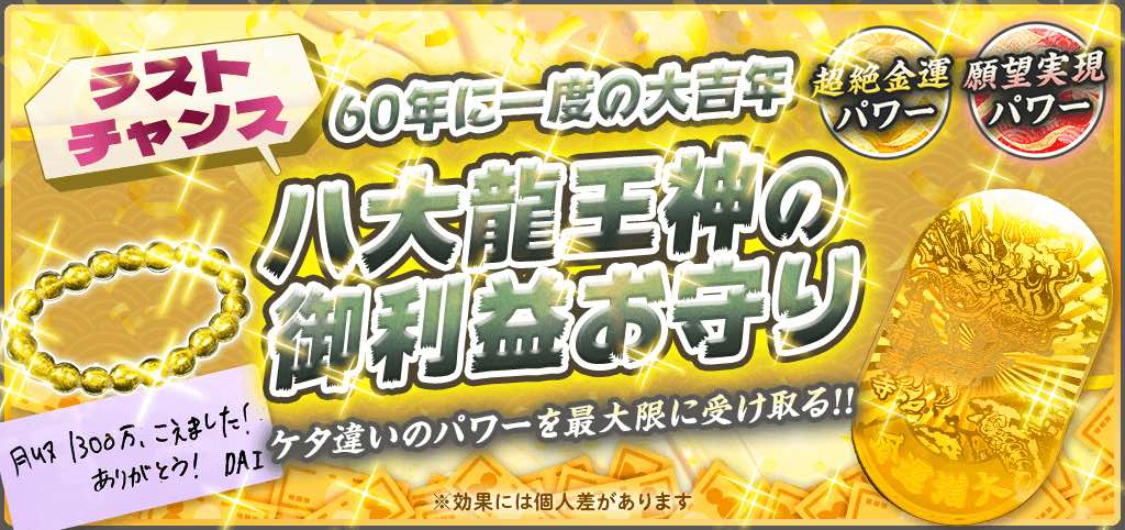 なぜか…それは、《八大龍王神の超絶金運パワー&願望実現パワー》を最大限に受け取るためには