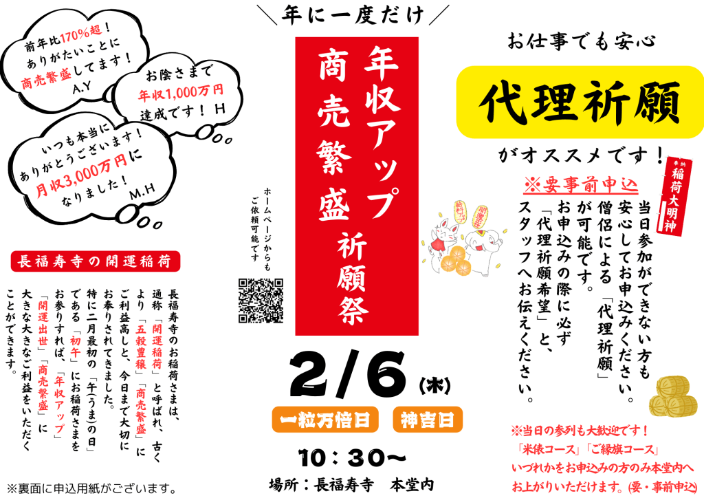 【〆切まであと20日】年に一度『年収アップ』『商売繫盛』の祈願祭~初午祭~