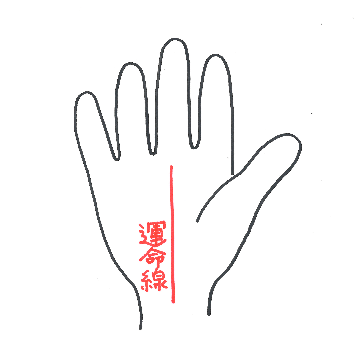 手首の方から中指の付け根に向かって伸びている、手のひら中央あたりに出ている縦線の事を『運命線』と言います。