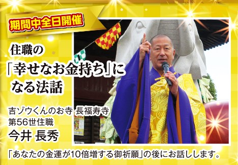 日本一の金運寺・日本一宝くじが当たる吉ゾウくんの長福寿寺 第56世住職 今井長秀です。