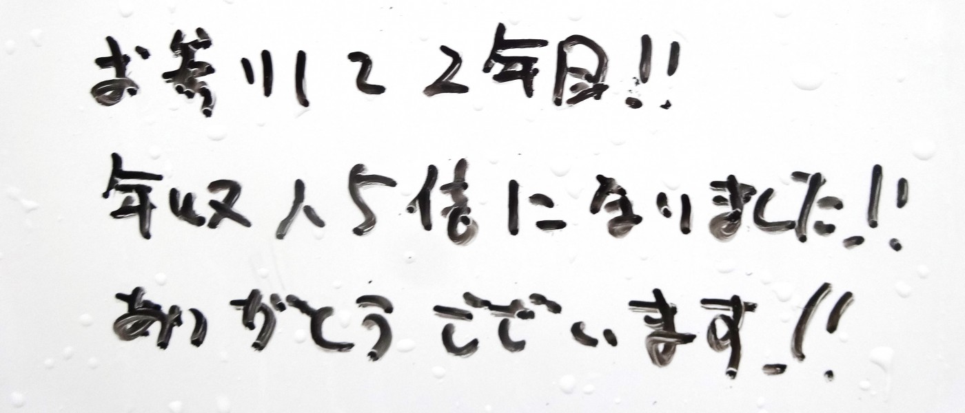 ボーナスがUPしました! 家族みんな元気です。ありがとうございます。 (松)