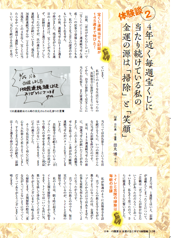 ●宝くじ145週連続当選の田丸さんの掃除術