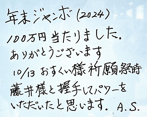 年末ジャンボ宝くじ【100万円】当たりました!藤井様と握手してパワーをもらいました (A.S様)