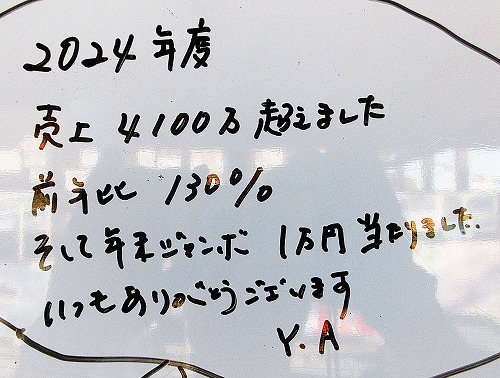 売上【4100万円】超えました。前年比130% (Y.A様)