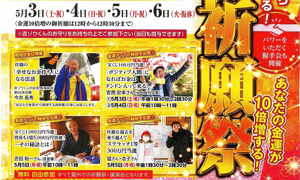 日本一の金運寺・日本一宝くじが当たる吉ゾウくんの長福寿寺 第56世住職 今井長秀です。