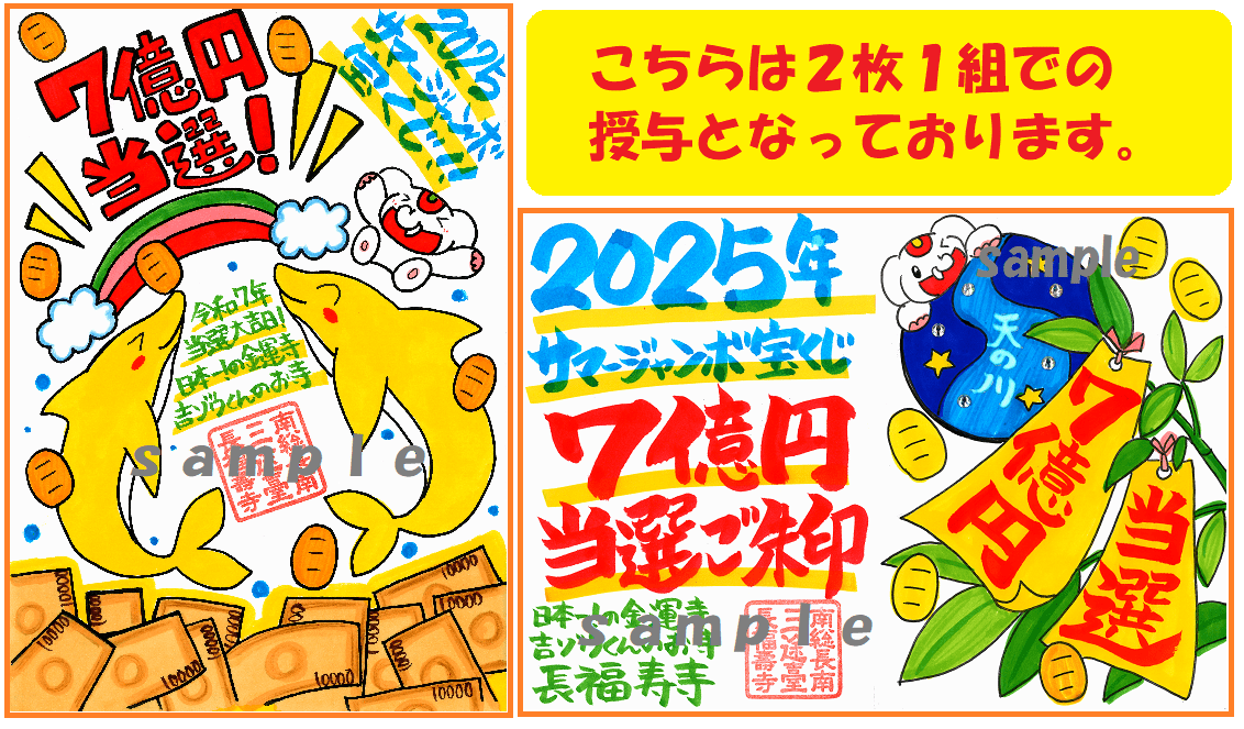- 1. 【絶賛受付中!!】2025年7億円長者になるのはあなた!『金運イルカと金運笹のサマージャンボ宝くじ7億円当選ご朱印』