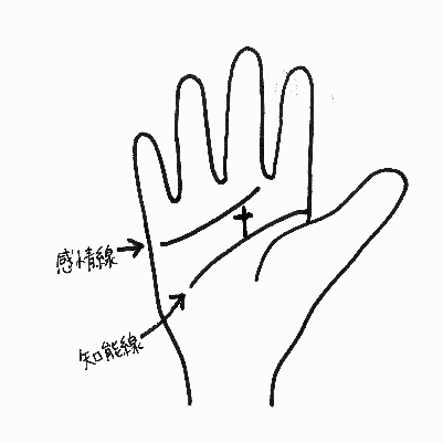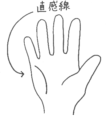小指の下から、小指側の手のひら下部に湾曲して伸びている線を【直感線】と言います。
