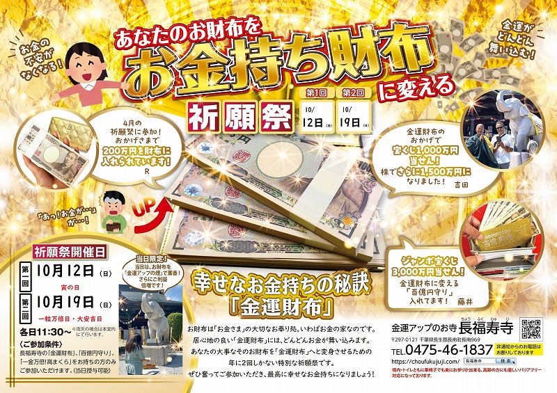 - 《あさって開催!》あなたのお財布を【お金持ち財布に変える祈願祭】 - 2025年10月8日