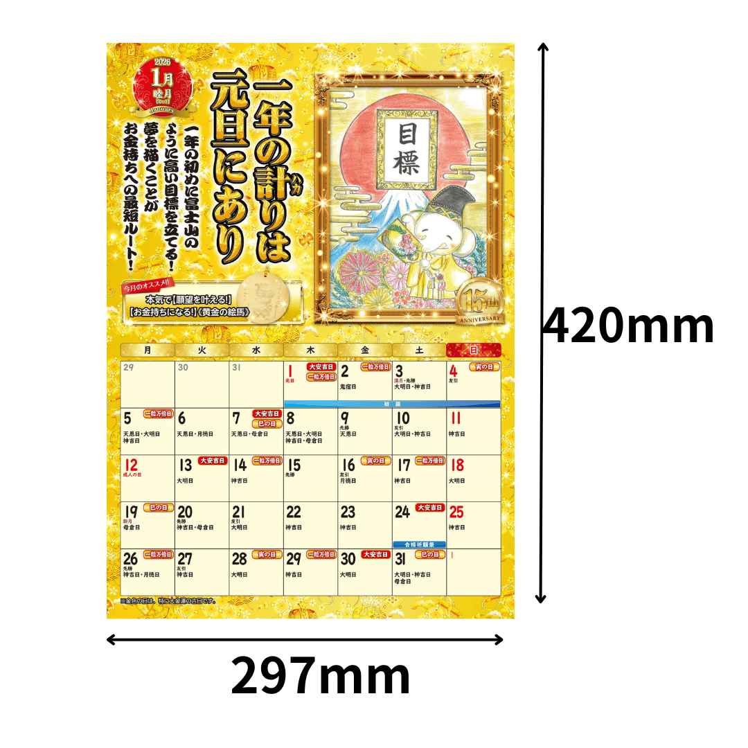 ・なんといっても、来年2026年版の開運吉日カレンダーは飾るだけで金運爆上がりの【縁起物】が沢山!