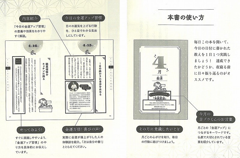 ●[今日の金運アップ習慣]日々の運氣を上げる行動を、ひと目でわかる見出しにしています