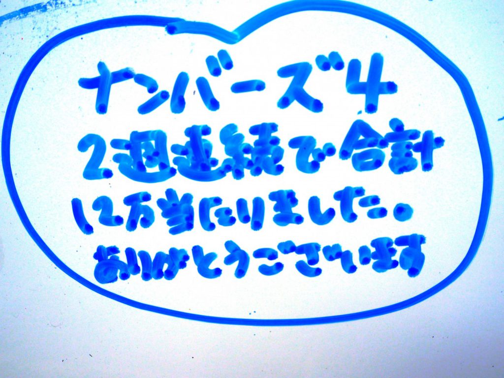 ナンバーズ4 2週連続で合計12万当たりました。