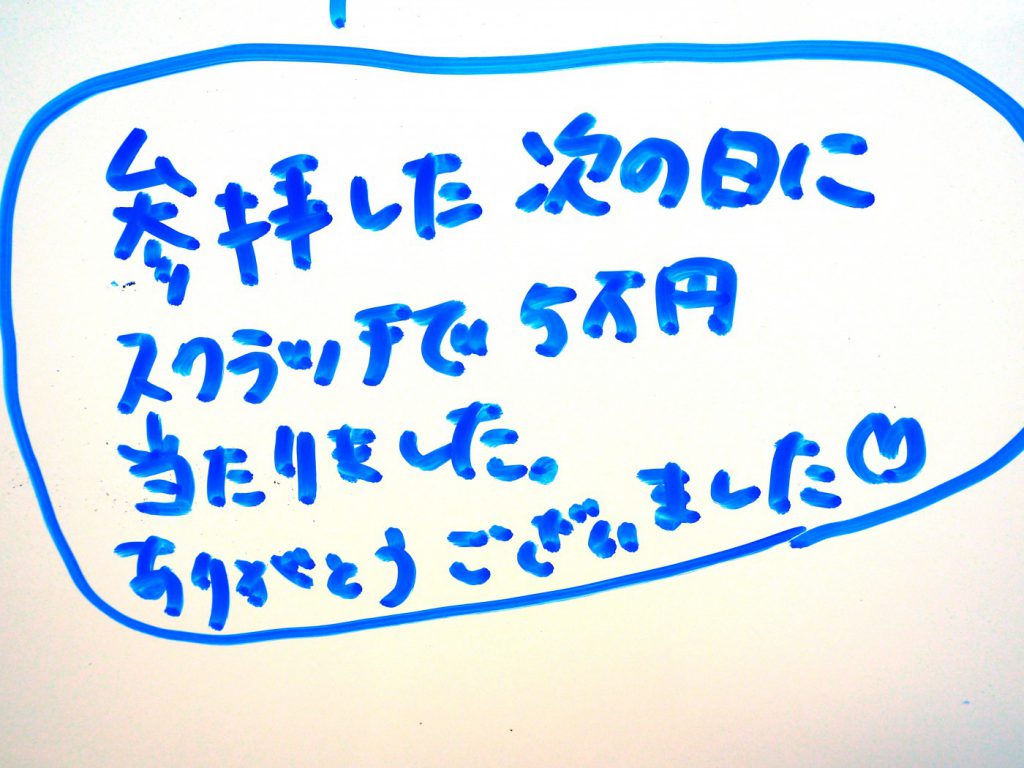 参拝した次の日に、スクラッチで5万円当たりました。