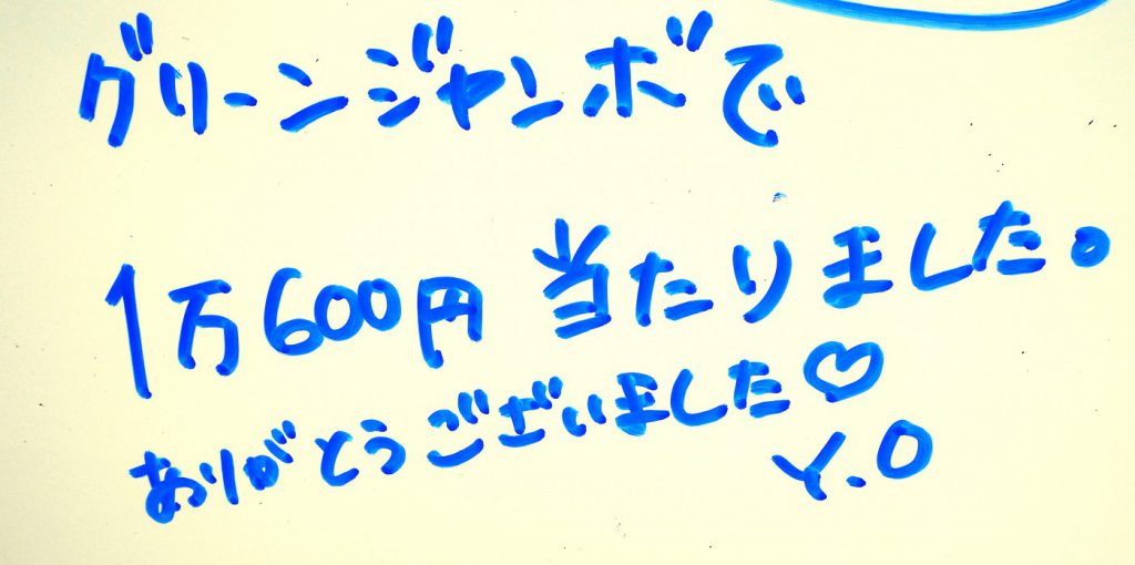 グリーンジャンボで1万600円当たりました