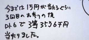 ●今までは1万円が当たるぐらいでしたが、3回目のお参りの後