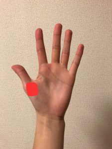 親指と人指し指の下の部分をぐぅーっと2分程度押す。