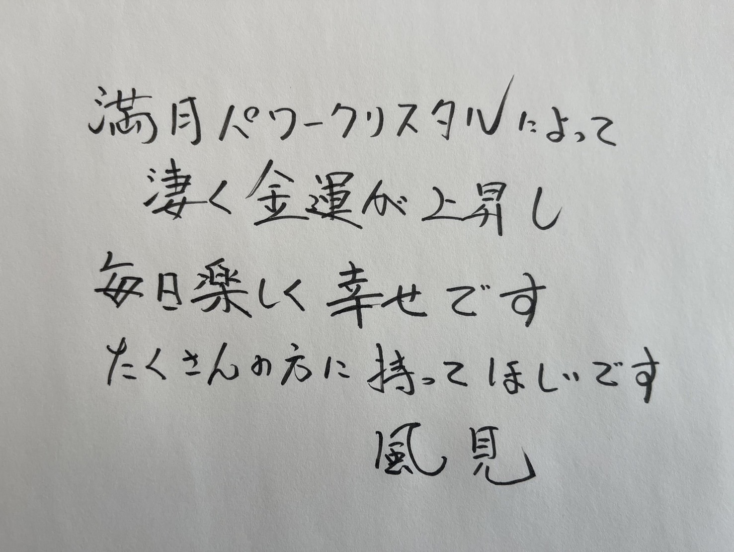 「《満月パワークリスタル》のおかげで、今では心に余裕が出来てお金にも恵まれて幸せな毎日を過ごしています♡」と喜びのお声もくださっています(‘ω’)♪