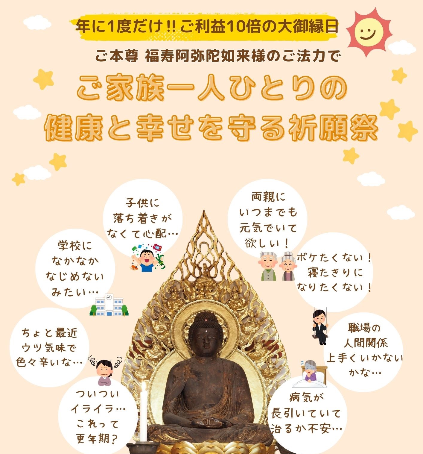長福寿寺のご本尊・福寿阿弥陀如来様【ご利益10倍の大御縁日】