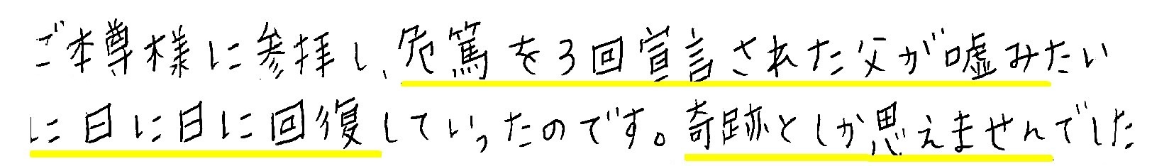 危篤を3回宣言された父が嘘みたいに回復。奇跡としか思えません。
