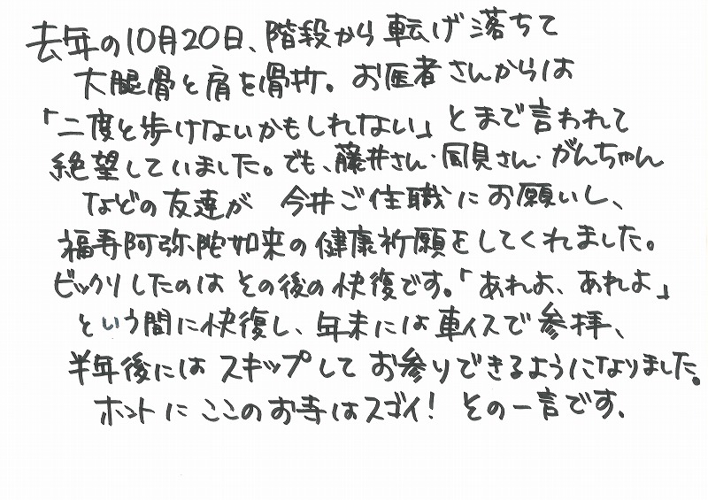 ●大事故で生死をさまよっていた息子が、たった3ヶ月でお礼参りに行けた!(M様)