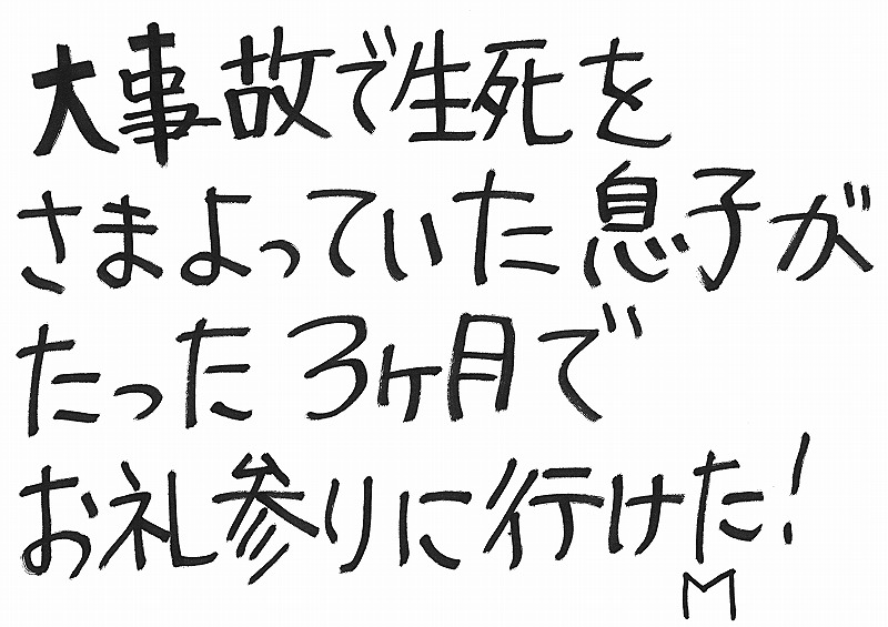 ●大事故で生死をさまよっていた息子が、たった3ヶ月でお礼参りに行けた!(M様)