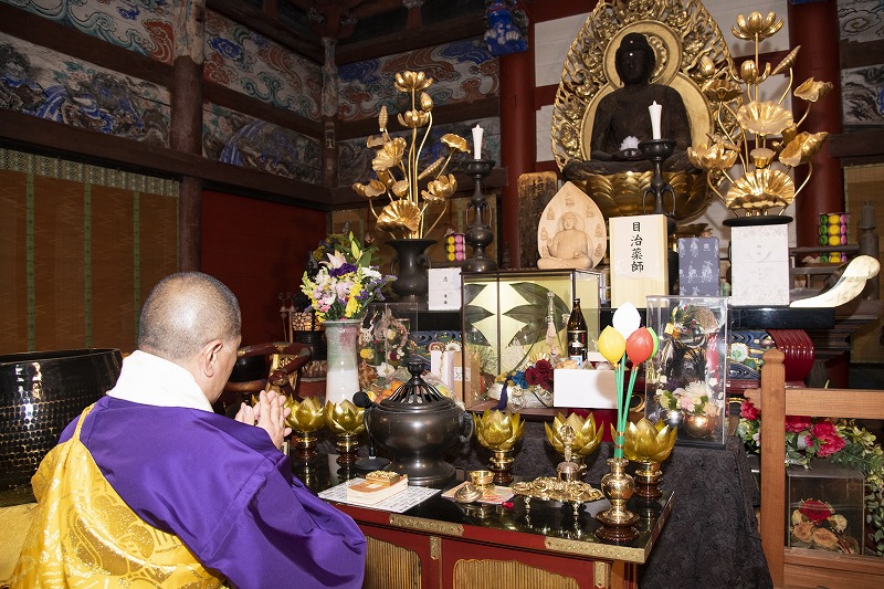 長福寿寺・本堂の目治薬師様御前にて執り行います。(雨天でも大丈夫です)