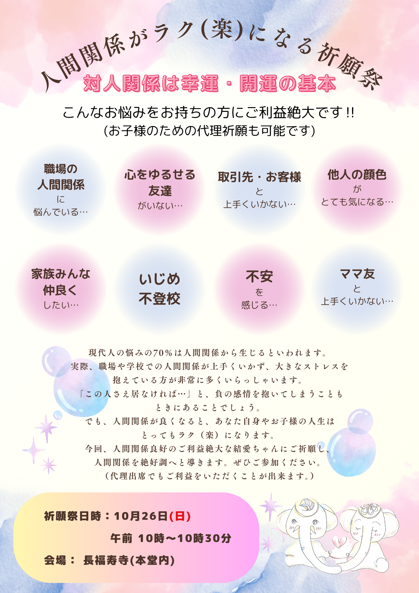 \明日開催/人間関係が絶好調になる祈願祭(職場・ママ友・家族・取引先…)